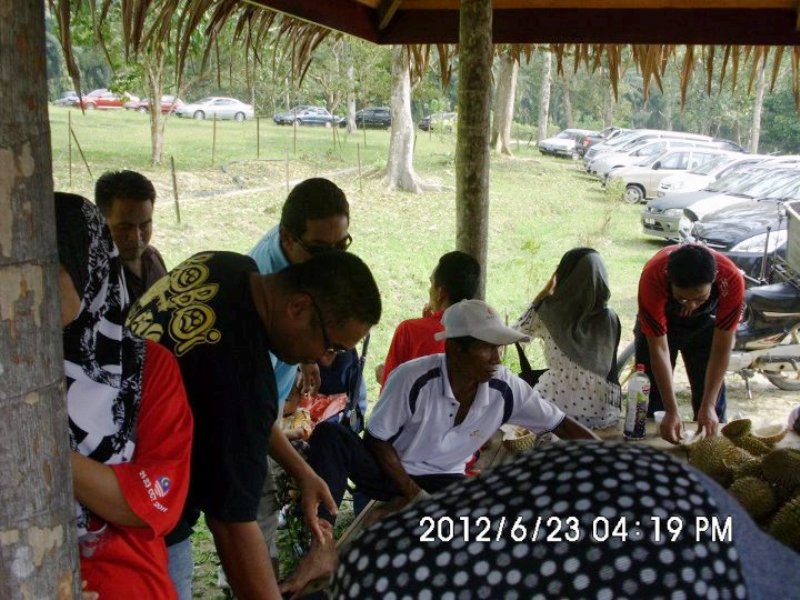 p/s : Trip belasah durian. Yang dok belasah tu orang lain kecuali hat baju putih tu saja.... tapi baju putih itu sedang melayan demam sekarang ni.tima kasih kerana menyokong.huhuhu. tak tahan hangat dah.